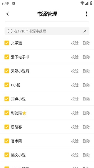 3.【书源管理】支持自主添加、检查和删除书源,轻松打造个性化阅读体验。