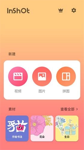 1、首先,需在手机里打开【inshot】应用,既能够导入照片或视频,也可以开展拼图操作,还能将多个视频合并成一个视频。