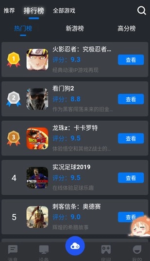 2、在排行榜内你可以看到热门游戏、新游以及高分游戏排行榜,你可以自由进行挑选。