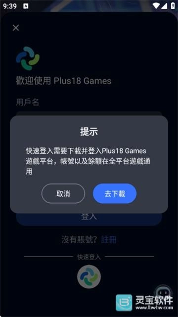 若选择快速登录,需同步登入Plus18 Games平台;也可点击“取消”,之后选择其他登录方式。