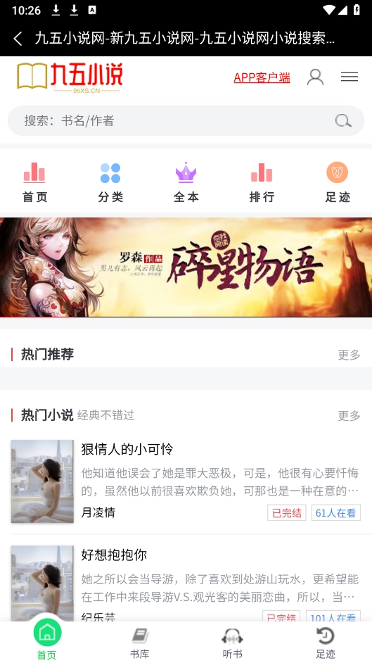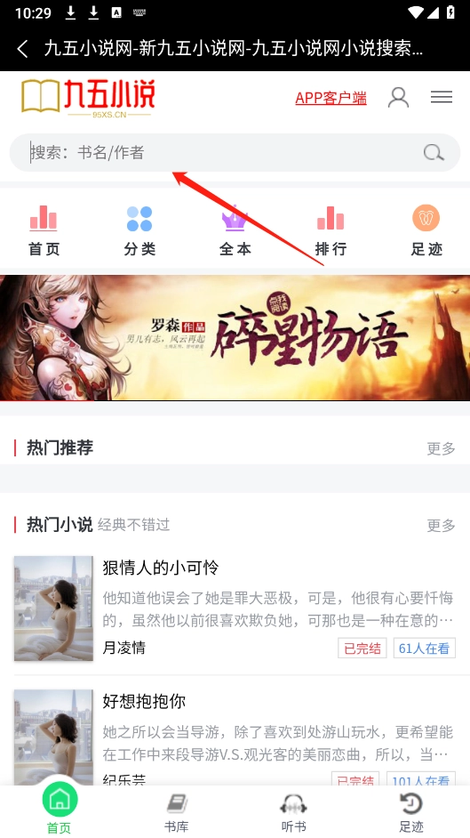 2、在首页以及书库页面提供了海量的热门小说资源。