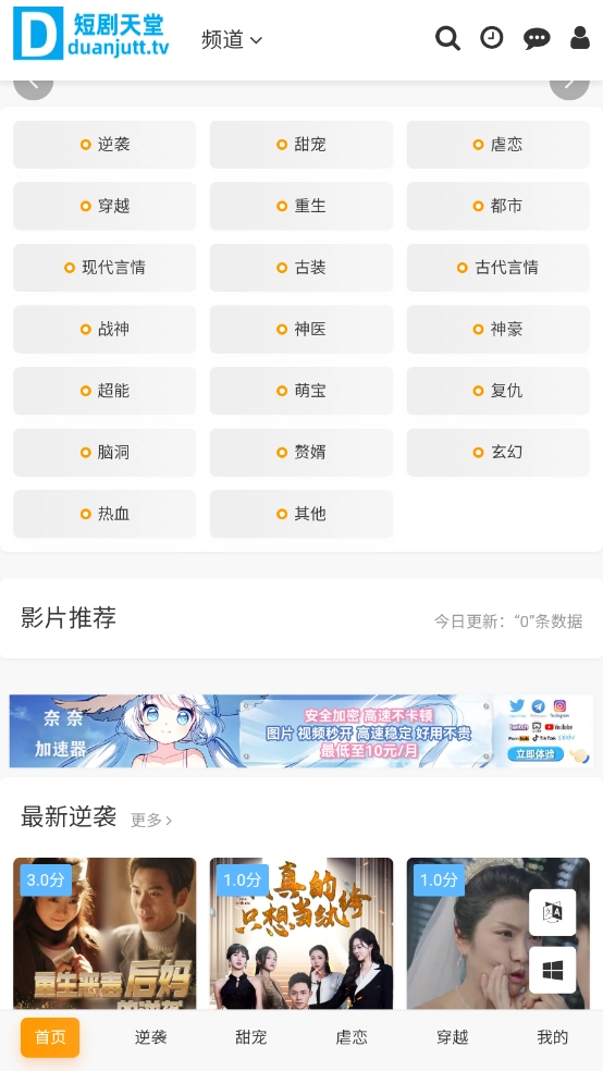 2、在首页汇集了海量的短剧资源,逆袭、古装以及都市的都有。