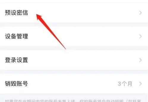 1、打开蝙蝠APP进入首页,之后依次点击“我的”“设置”“账号与安全”“预设密信”选项。