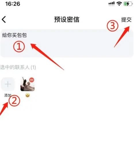 2、点击右上角的“添加”,输入暗语,选择使用暗语联系人,点击提交就设置好了。