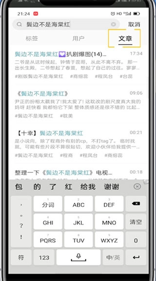 3、在搜索框输入文章名字,点击文章即可进入查看