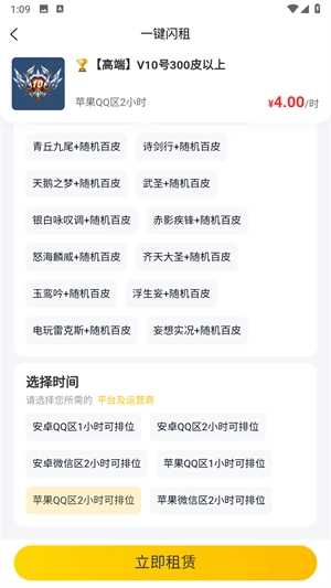 3、选择相应的时间,不同的租号时间对应的价格不一样。