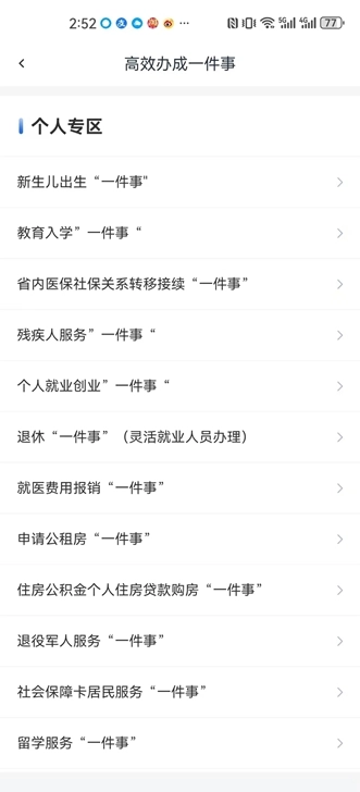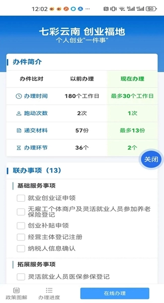 第三步:选择所需办理的“一件事”,按要求提交材料点击“在线办理”并按流程指引完成操作。