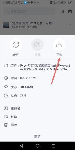 另外还有一个更快捷的方法就是在文件页面中直接长按文件,之后就会在下方同样会出现渠道的。