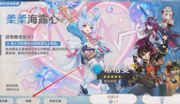 2、然后进入游戏点击抽卡页面左下方-查看详情-历史记录;