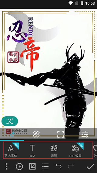 3、支持添加字体、text、滤镜、pip效果等;