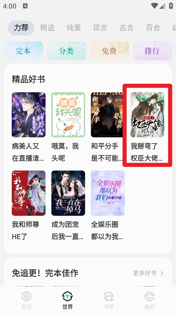 2、如图所示,点击后会跳转到“书城”页面,接着选择想要加入的小说并打开它。