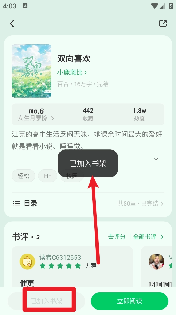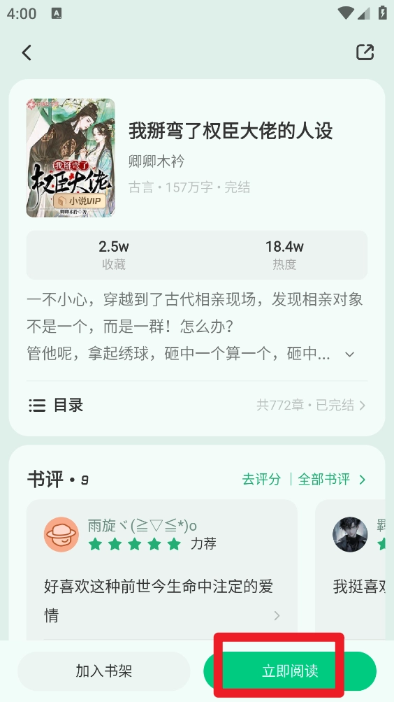 3、一键打开,进入小说详情页,点击"立即阅读"。