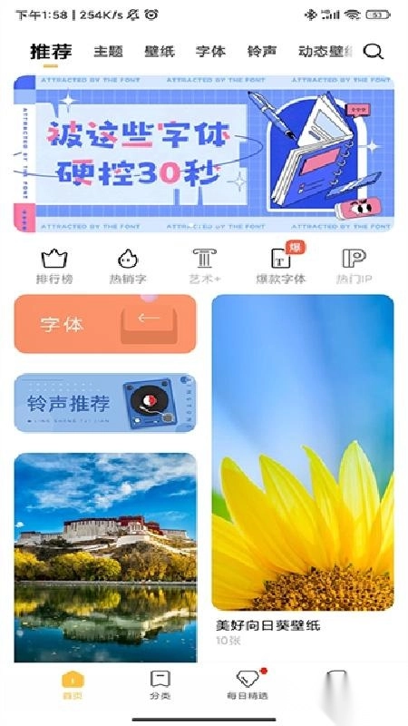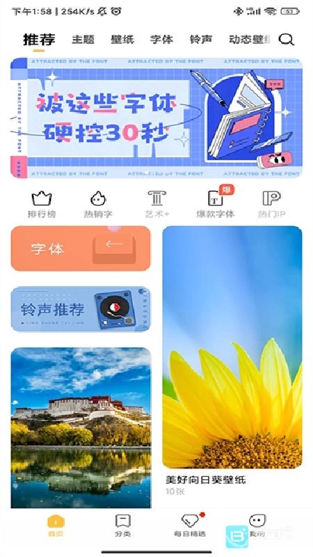 主题商店汇聚了主题、壁纸、字体、锁屏、铃声等海量资源,并且每日都在不间断地更新。