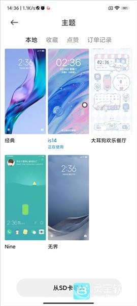3、进入主题界面后,点击下方的“从SD卡导入”选项,然后选择对应的.mtz文件就可以了。