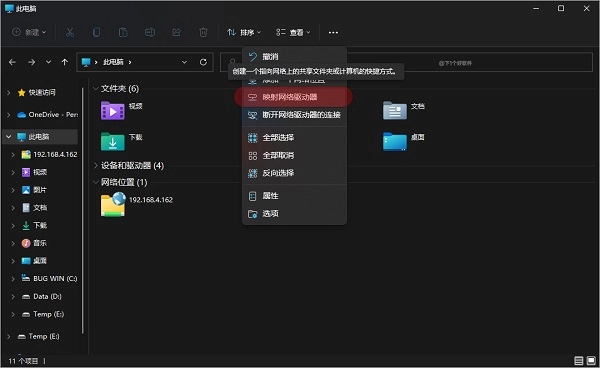 5、接着你在电脑上可以用浏览器访问FTP地址或者映射网络驱动器的方式来访问,打开资源管理器-工具栏-映射一个网络位置。