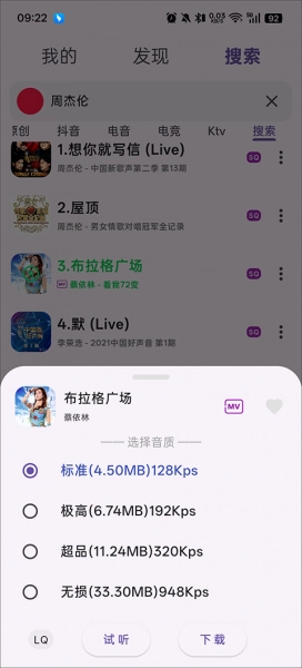 1、搜索云音乐,聆听你喜爱的音乐,提供标准、极高、高品质、无损四种音质供你选择,涵盖网易、酷狗、QQ等多个平台。