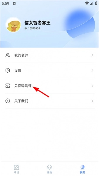 4、用户在航线雅思学习平台购买课程后,可进入“我的”页面,点击“兑换码购课”选项。