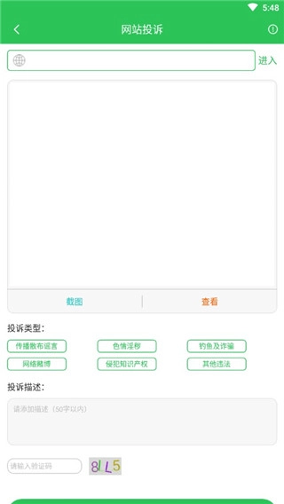 2、点击网站投诉入口,输入违规网站的链接,进入对应页面后进行截图,接着选择违规类型,添加相关描述,完成这些操作后即可提交投诉。