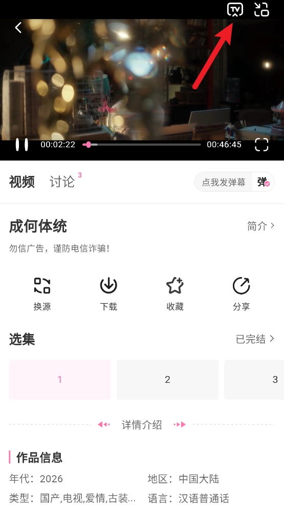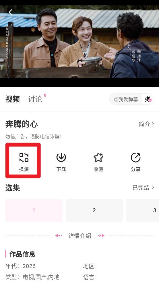 2、进入播放详情页点击"换源"按钮。