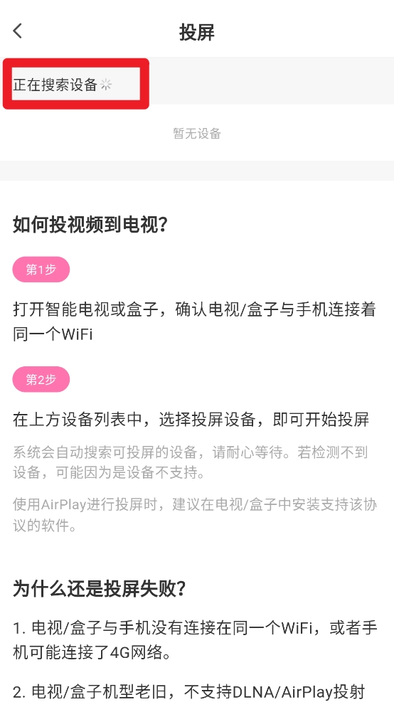 4、如图所示,完成搜索并连接投屏设备后,就能开展投屏播放操作了。