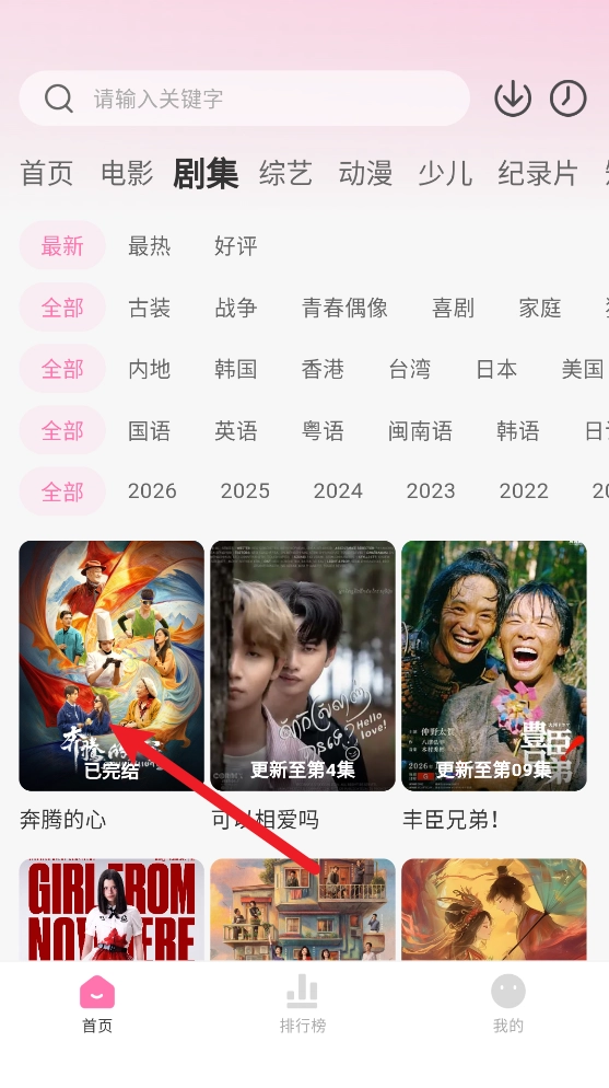 1、打开软件,在首页选择并打开所需的剧集资源。