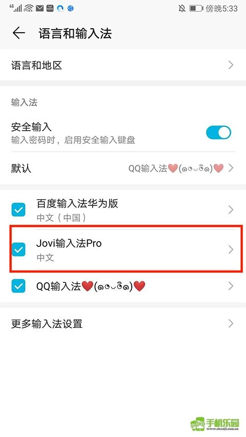 2、进入语言和输入法界面,首先勾选Jovi输入法pro,