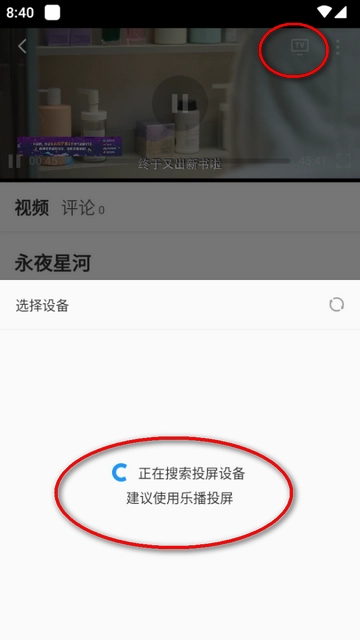 2、接着会自动搜索附近的投屏设备,如图所示。