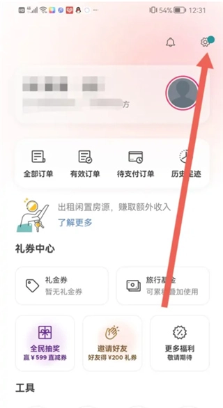 2、进入首页后点击“我的”,进入个人中心页面,接着点击右上角的设置图标。
