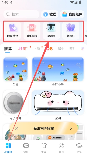 1、打开软件首页的小组件页面,点击顶部的灵动岛功能。