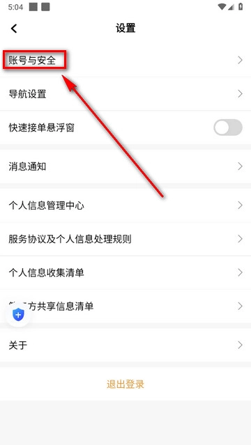3、进入设置,选择账号与安全选项