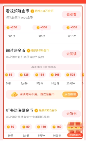 在“赚金币”板块中,用户可以通过听书、阅读等多种方式完成任务,每完成一项任务均可获得丰厚的金币奖励。