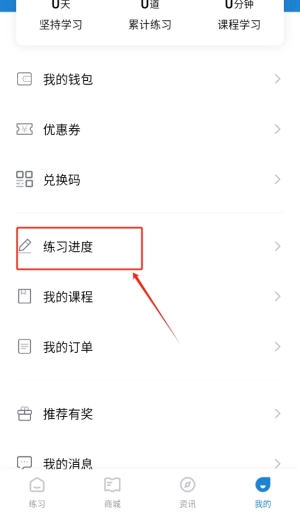 3、查看自己的练习进度,系统会自动统计并展示进度,帮助你及时调整备考计划。