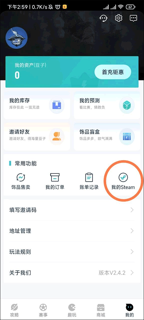 2、在主页中大家可以看见很多与我们有关的功能,这个时候我们在常用功能区域中找到【我的steam】点击进入。