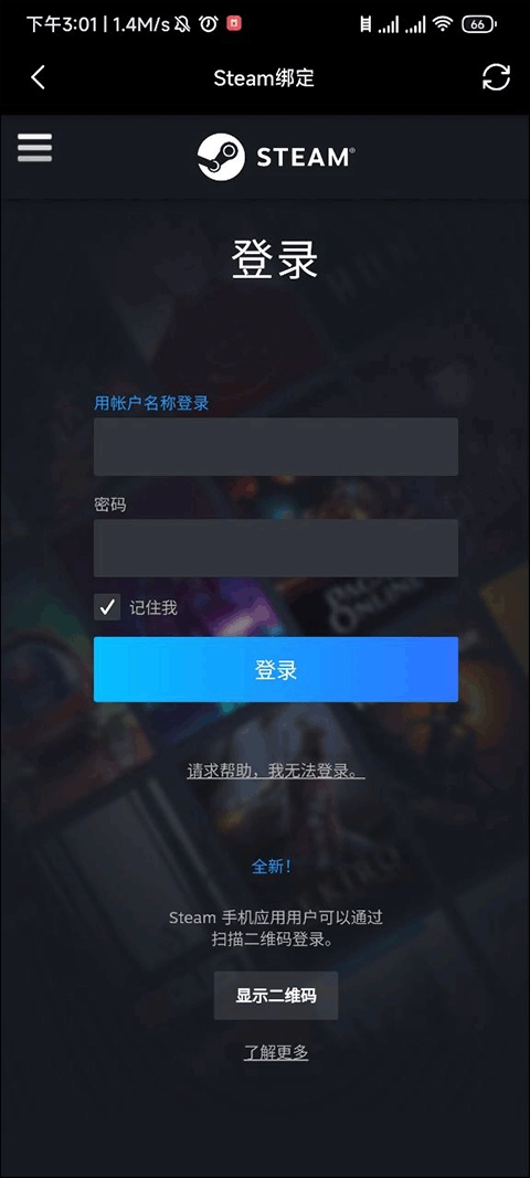 4、这个时候就进入steam绑定界面了,我们首先要登录自己的steam账号,这个地方要注意,进入前要先打开加速器加速steam,不然界面无法显示。