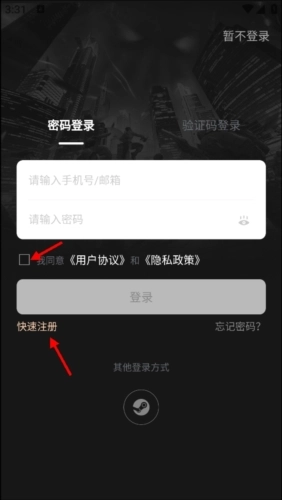 3、若之前没有账号则可以点击“快速注册”进行账号注册。