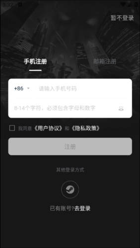 2、在登录页面输入手机号与密码进行登录,或者使用手机号接受验证码登录。