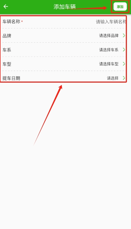 3、在跳出的信息录入框中,如实填好车辆信息,无误后,点击右上角的 “添加”,车辆信息就成功录入啦 。