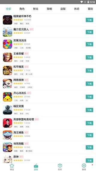 5、还可以在游戏分类或者软件分类中浏览某一类的应用