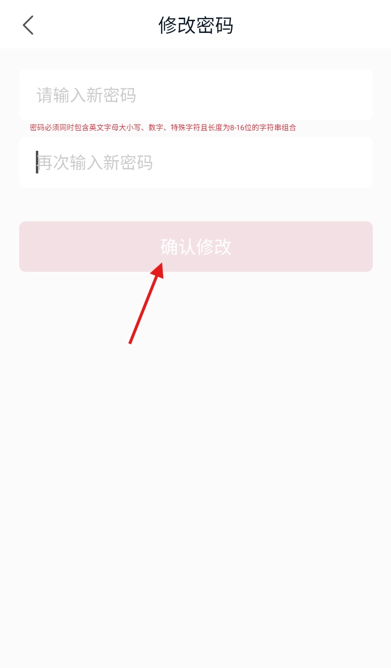 3、在修改密码界面输入新密码,再次确认新密码无误后,点击 “确认修改” 完成密码更新。