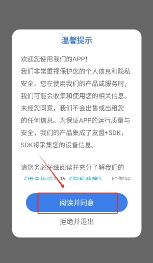 1、点击同意按钮进入应用程序,即可接受相关条款与隐私政策,进而顺利开启您的学习体验。