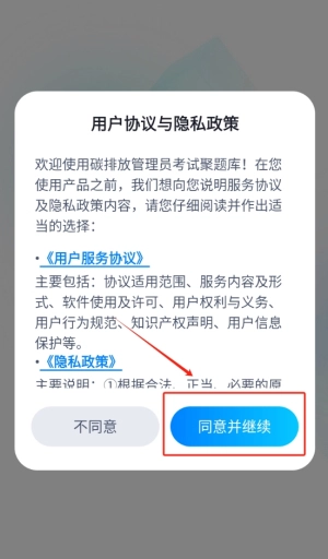 1、点击“同意”进入应用程序,即表示您接受相关条款与隐私政策,以便顺利开启您的学习之旅。
