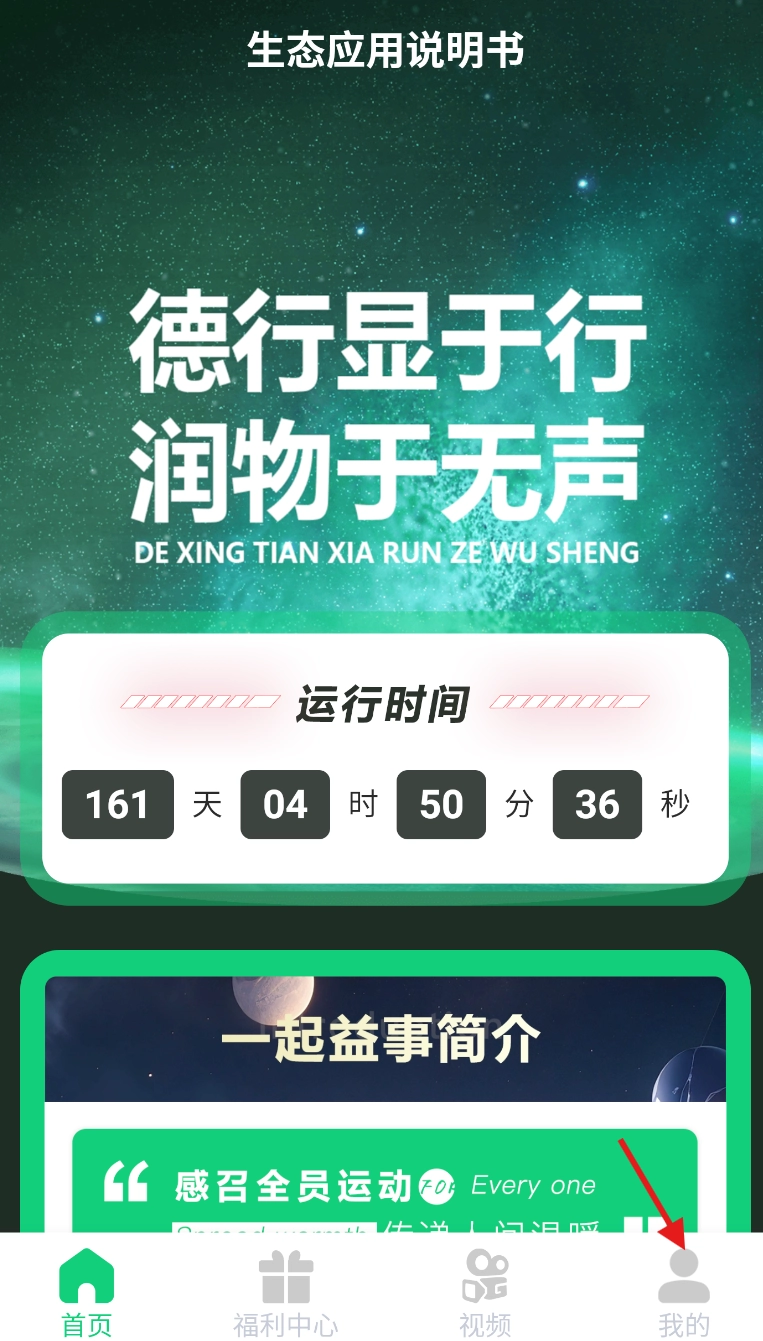 1、打开一起益事应用,在界面底部找到“我的”选项并点击,即可进入个人管理页面。