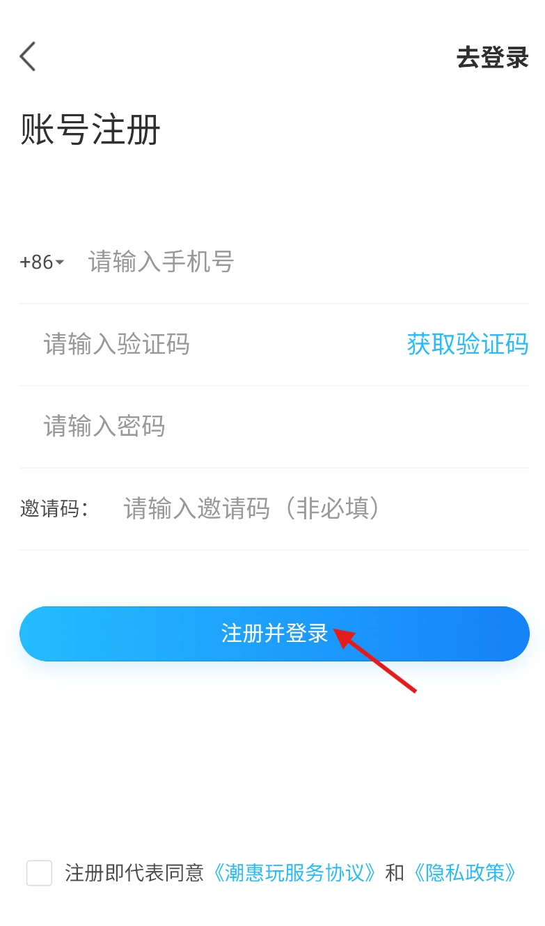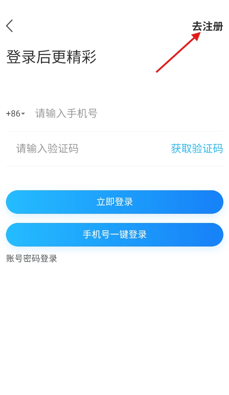 3、在登录注册界面右上方,找到醒目的 “去注册” 标识,点击开启注册流程。