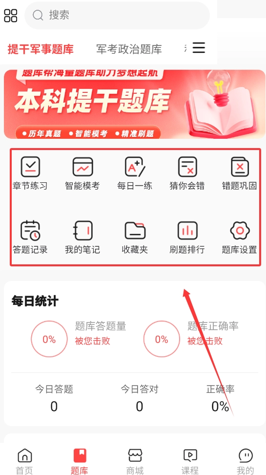 本科提干题库帮是一款专为大学生打造的刷题学习工具,涵盖了多学科的习题与学习资料,适用于日常练习、模拟测试以及错题回顾等多种场景。该软件的核心优势在于题库资源丰富、解析详尽到位,系统会自动将错题分类整理,便于用户针对性地强化复习。此外,软件了笔记功能,用户能够随时记录关键知识点,考前查阅十分便捷。