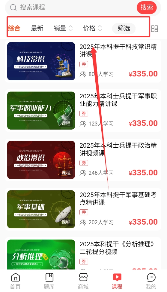 3、紧跟教学大纲和考试趋势,确保练习内容不过时,可以在课程内搜索内课程学习。
