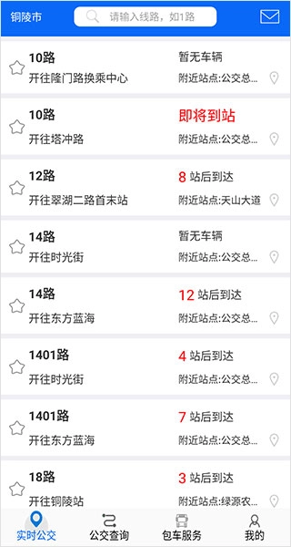 1、进入铜陵公交页面,这里会为您展示公交出行相关信息;