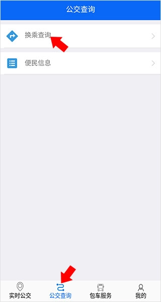 4、如果想要查询换乘线路,那么点击【公交查询】-【换乘查询】;