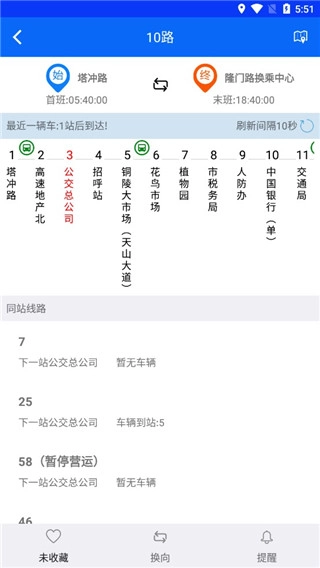 3、在每一个公交路线中,你可以随时查看公交的到站地点;