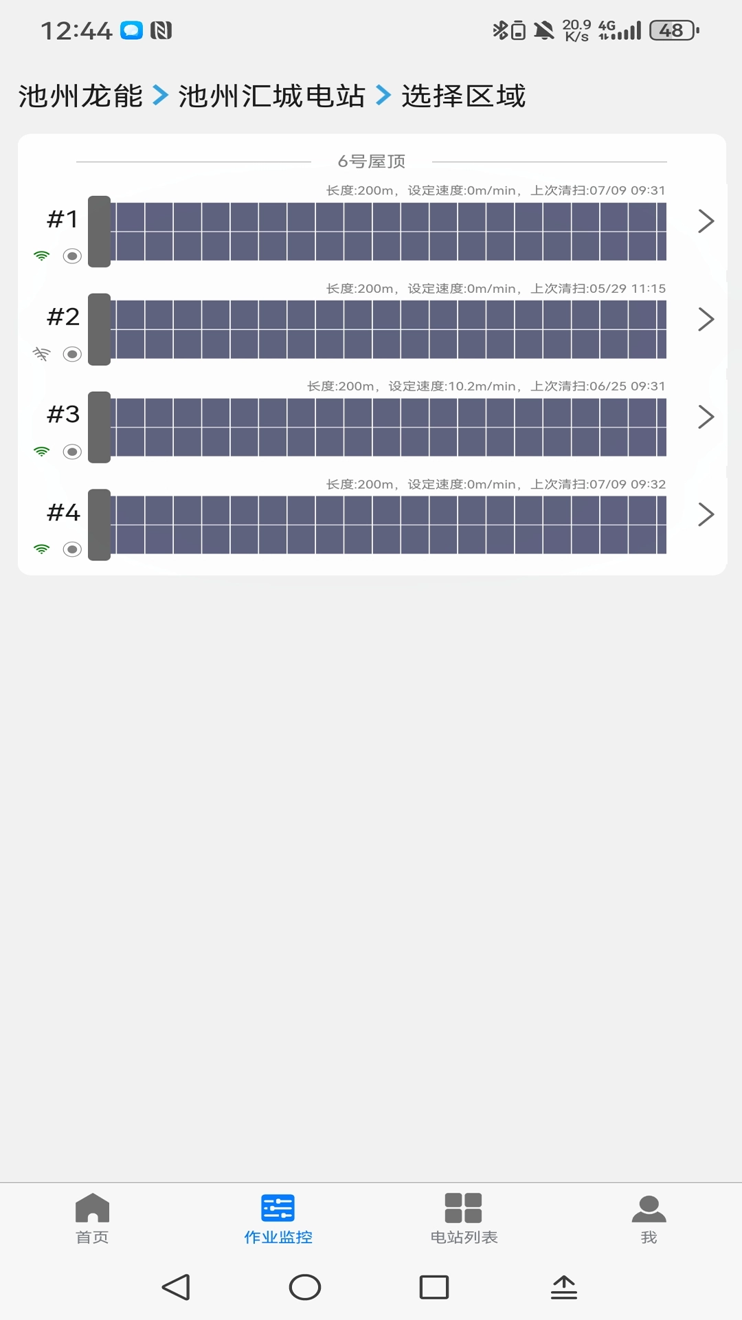 同时负责清扫机器人、摆渡机器人以及多个电站的管理工作,能够实时了解各类设备的在线、故障、停运等运行状态。