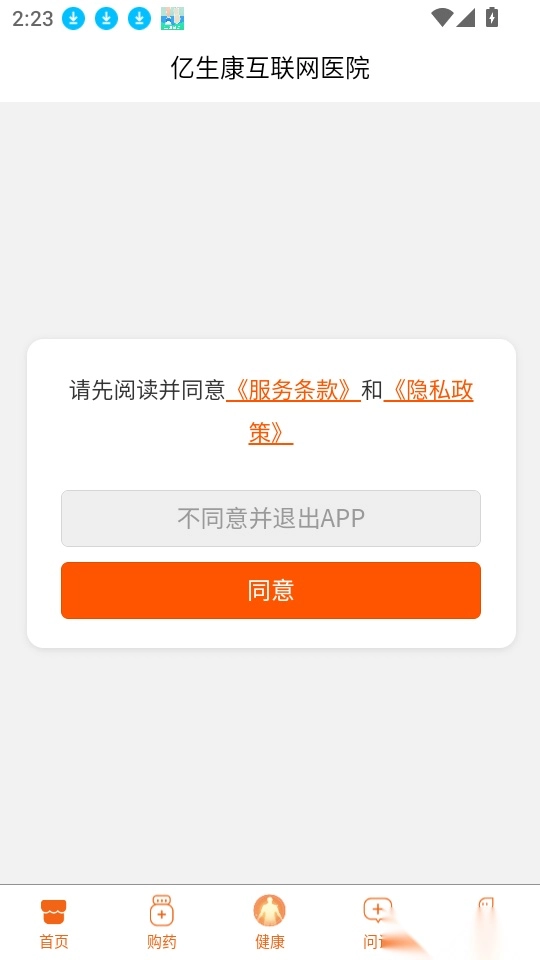 2、然后来阅读“服务条款”和“隐私政策”内容后点击下方”同意“按钮进行下一步。
